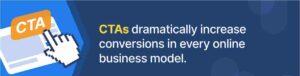 A CTA acts as instructions, telling visitors what they should do next to get one step closer to becoming a customer. While that may sound bossy, studies prove that CTAs dramatically increase conversions in every online business model, from lead generation to charitable donations.