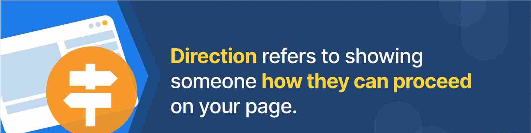 Direction refers to showing someone how they can proceed on your page — in most cases, this directs a user to scroll down your page. Vertical scrolling is the most common form of progression on websites because it’s simple, intuitive, and useful.